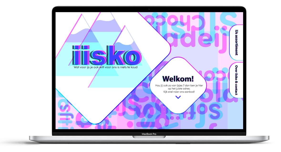 Omschrijving In het iisko project ben ik bezig geweest met het verdiepen in de stijl "Layering and overprint" en koos ik ervoor om ijsmerk te gaan promoten genaamd iisko op een one-pager. Ik experimenteerde met de stijl, illustreerde eigen illustraties en kwam uiteindelijk tot de volgende lay-out.